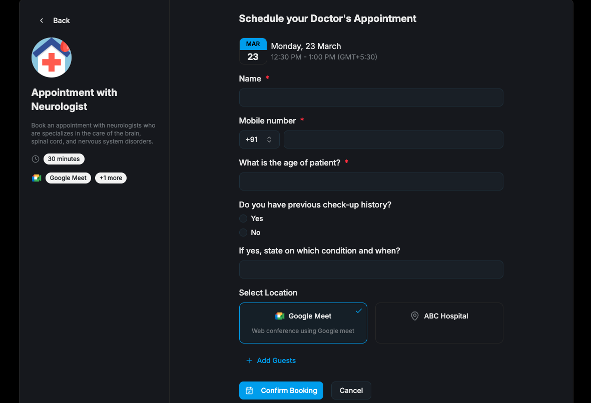 The best way to start is to determine the information you need to collect: Before customizing the form, think of the information you need to collect from users. This could include their name, contact information, reason for the appointment etc.