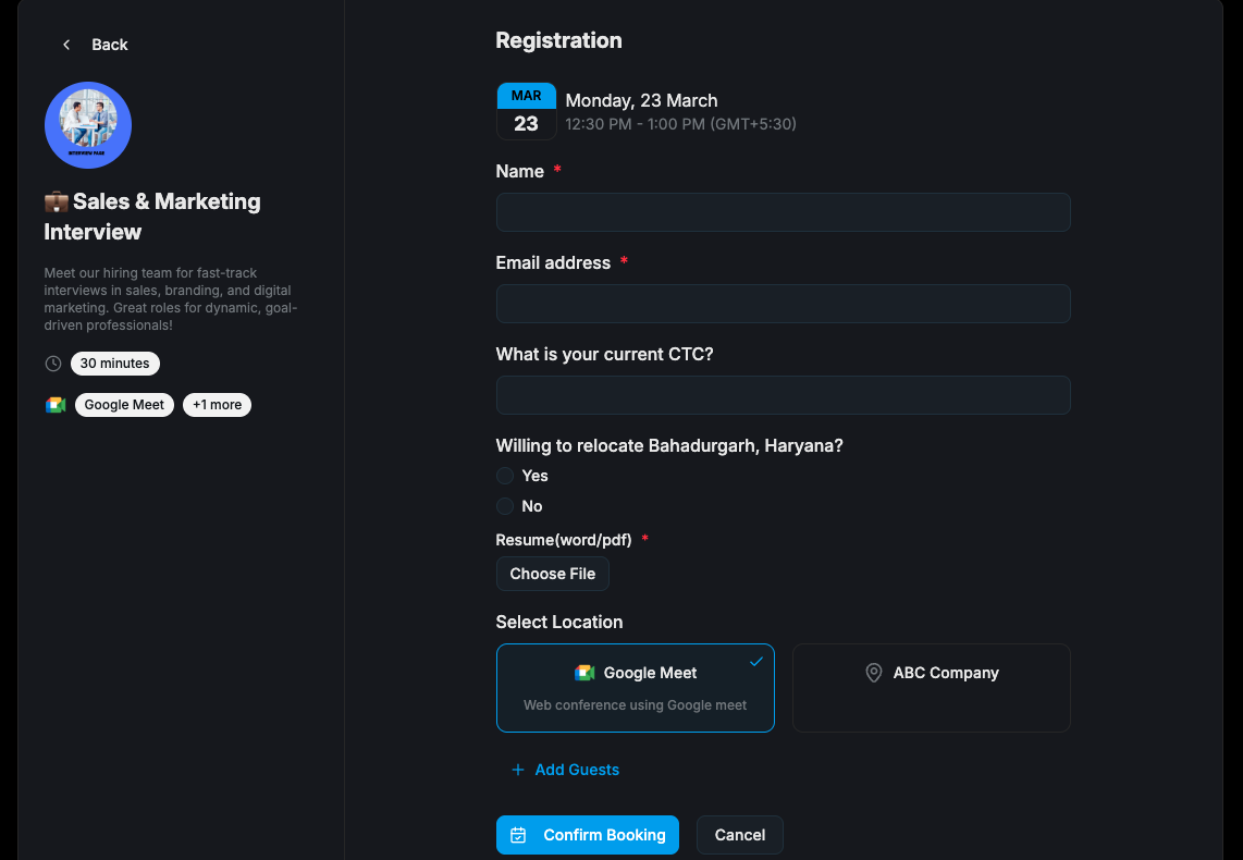 - Interview scheduling form